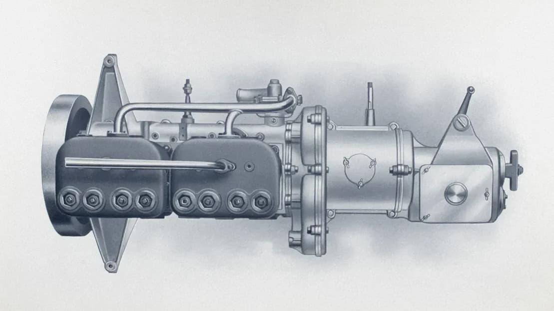 A haste atravessa o cabeçote do cilindro e se conecta à máquina.